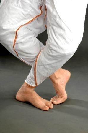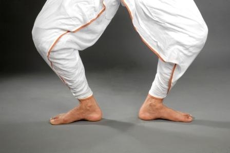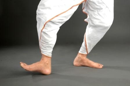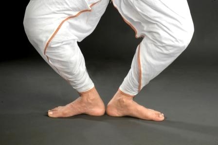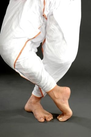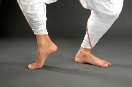 ·         Purush ora pada :The foot position is in biparitmukhi or saman ora pada. But the distance between the heels should be the length of dancer’s one sole or one tala . This is called purusha ora pada . All the masculine dance style of Sattriya dance start from this foot position.