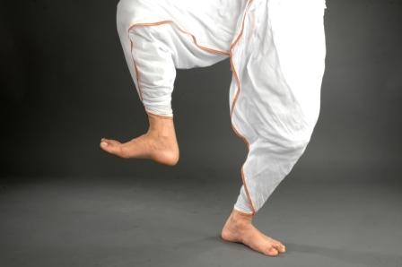 ·         Eka Pada : Standing on the left foot and keep the left knee straight . Bend the right knee and placing it behind the left knee so that it is not visible. It is generally used in Sattriya Ojapali, thiya muruka (one of the mati-akhoras), various bhangis and abhinaya part of Sattriya dance.