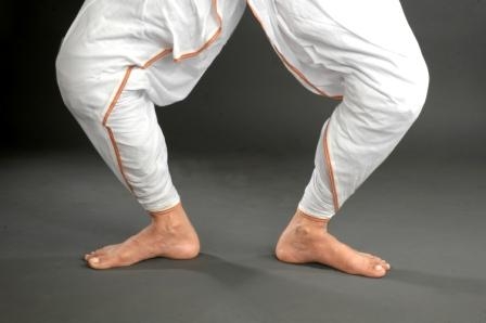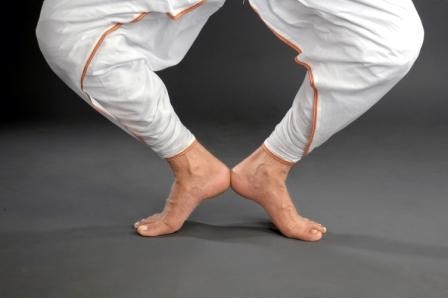 ·         Mandala pada : The same as purusha ora pada with a wider distance between the heels . This distance should be about two talas . Generally in gayan –bayan abhinaya etc. this position is used etc.